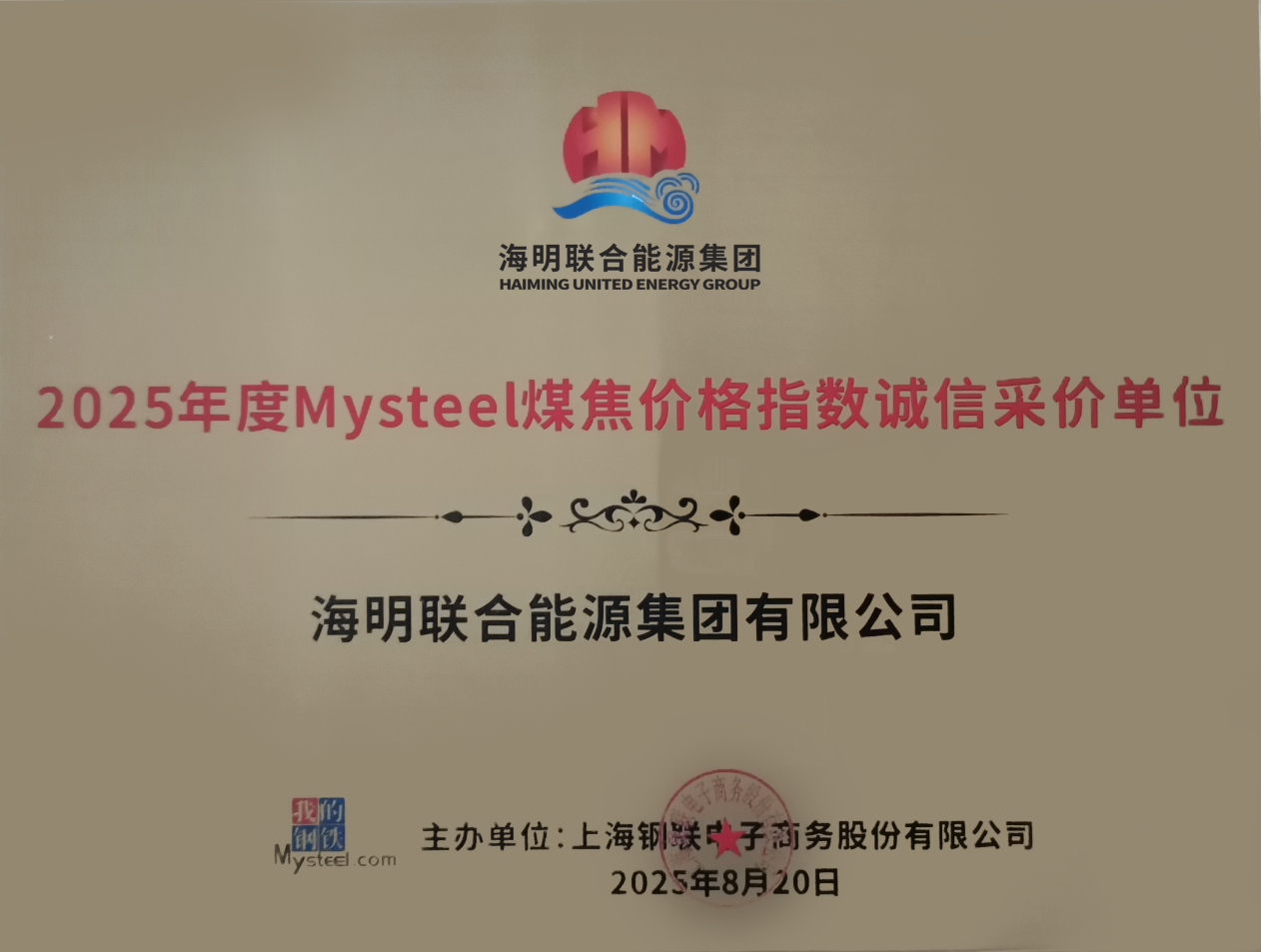 公海555000官网集团等16家单位被授予“2025年度Mysteel焦煤价格指数诚信采价单位”,极大的提升了公海555000官网集团在业界的影响力。