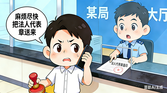 财务人员,办理业务只带了公章、财务章,盖章时发现还要法人代表章,送章跑断腿。