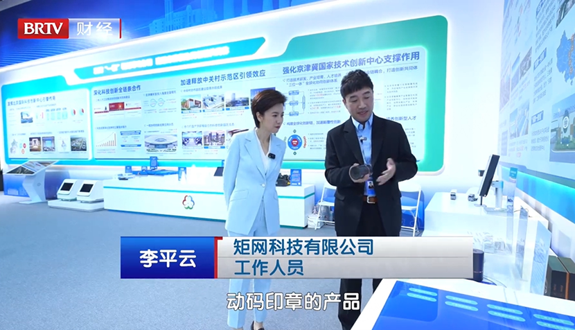 现场,矩网科技李平云接受北京广播电视台财经频道《京津冀大格局》栏目采访,采访中他介绍了矩网科技自主研发的物电同源一体化的全场景安全印章智慧解决方案——动码印章,也是应用“物联网 ”“大数据 ”“人工智能 ”“区块链 ”等数字技术的科技创新产品。动码印章包括动态防伪码、动码印章云平台和动码印章机三大核心产品,已取得160多项国际国内专利、软件著作权和商标等知识产权。同时支持线上电子签章和线下物理盖印等全场景用印,实现了物电同源、印迹防伪、印迹溯源、大众识别、跨省通办、芯片加密、协同办公、一机多章、印章防盗、开放平台十大核心功能,从源头解决印章造假和违规用印的法律风险,杜绝假章、假证、假公文,为跨地域、跨部门、跨领域协同办公给予了完善的用章解决方案。在有助于传统印章从“印章安全”转向“印迹安全”方面颠覆性创新,为智慧印章行业带来了历史性变革。